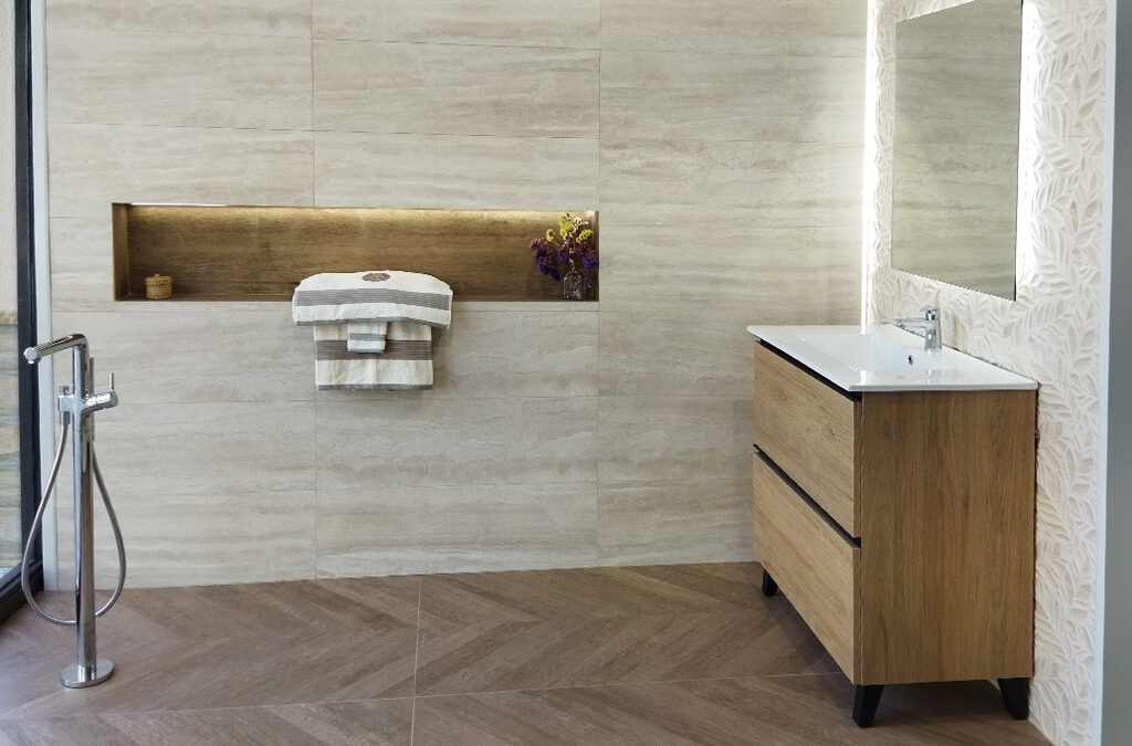 Además, podrás encontrar todo lo necesario para completar tu reforma: desde cementos, adhesivos y materiales de instalación, hasta los complementos y remates que garantizan un acabado profesional. Y si lo que buscas es inspiración, nuestras exposiciones están diseñadas como espacios reales, con ambientes completos de baños y cocinas.